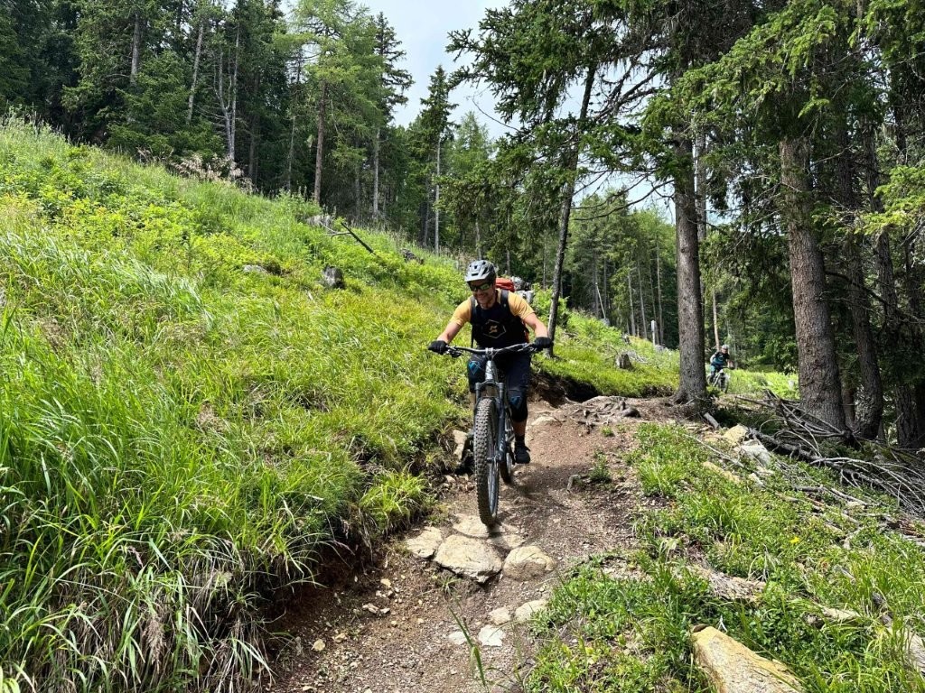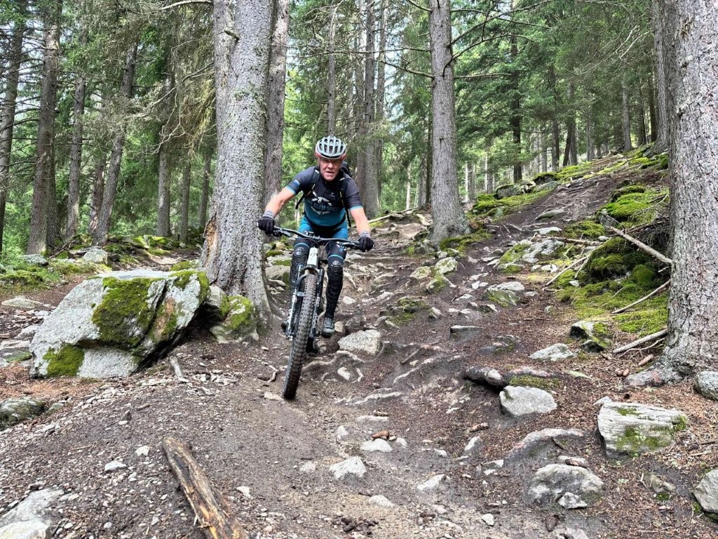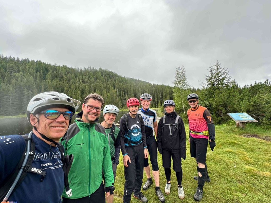 Packt den Regenschutz und die Badehose ein, es hat ein Bad im Hotel, war meine letzte Nachricht an die Teilnehmer vor dem verlängerten Weekend in Nauders. Das Hotel war gebucht, Ferientage und Fahrgemeinschaften geplant, nur das Wetter entsprach nicht dem, was wir Ende Juli erwartet haben. Also galt es von Tag zu Tag oder eher von Stunde zu Stunde das Regenradar zu konsultieren und die nächsten Schritte zu planen. Im Grossen und Ganzen hat uns das und unsere Flexibilität geholfen, einigermassen trocken durch die vier Tage Biken rund um den Reschensee zu kommen. Kurz: Trotz unerwartet schlechtem Wetter ein gelungener Anlass und alle Teilnehmer hatten ihren Spass auf den Trails und in den Alphütten beim Kaiserschmarrn.